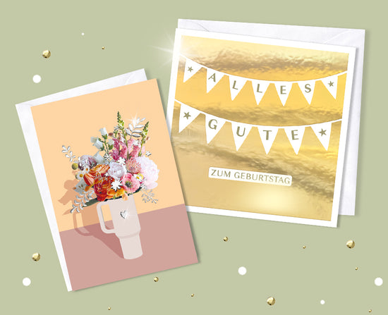 Die Karte mit dem besonderen Glanz! Von elegant bis witzig bietet unser Konzept „Alles & Anders“ eine vielfältige Motivauswahl in modernen Farben und harmonischen Designs. Das besondere Highlight ist der hochglänzende 4D-Relieflack in Gold oder Silber, der jede Karte veredelt und zu einem echten Hingucker macht. Für alle, die etwas Besonderes verschenken möchten!