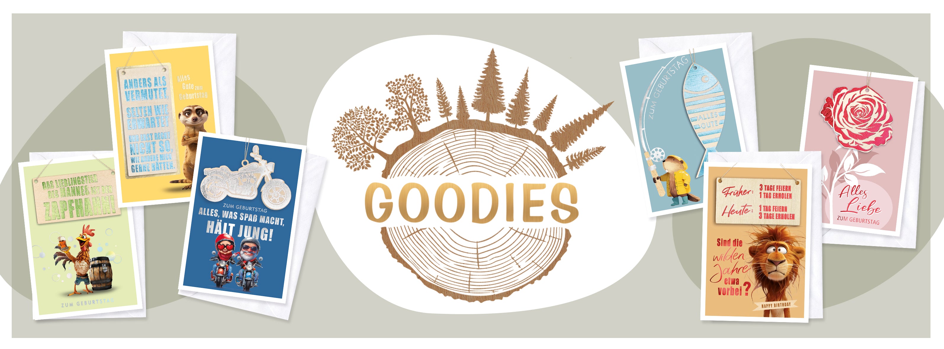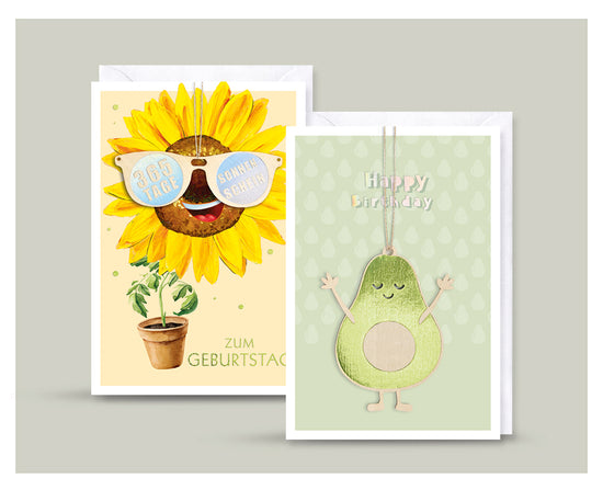 Die Karten mit dem „WOW-Effekt“! Witzige Motive, Themen für Frauen und Männer, Trendthemen und Designs für Kids zeichnen diese Karten aus. Absolutes Highlight ist der veredelte Holzanhänger! Er kann dekorativ zu Hause einen Platz finden oder als süßes Accessoire mit dem nächsten Präsent weiter verschenkt werden.