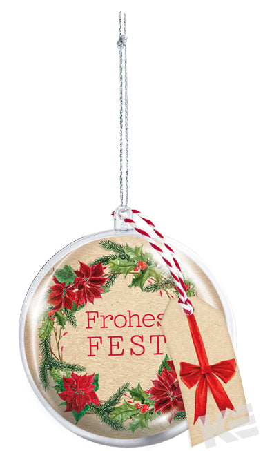 Weihnachtsbaum Anhänger, Kugel, Kranz aus Tannenzweigen, Klarsicht, Acryl, Durchm. 5cm incl. Geschenkanhänger