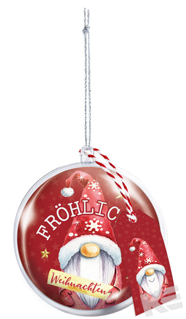 Weihnachtsbaum Anhänger, Kugel, Wichtel, Klarsicht, Acryl, Durchm. 5cm incl. Geschenkanhänger