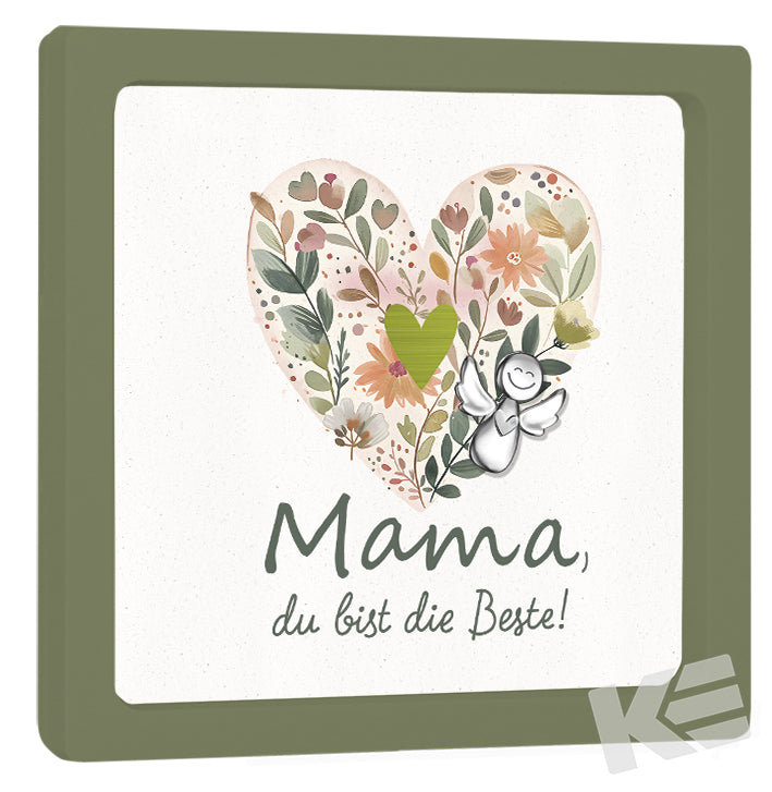 Dekorahmen ca 10 x 10 cm grün, Sweet little Bodyguards, bestückt mit einem Metallanhänger Bodyguard mit Herz, Einlegeblatt beidseitig bedruckt,mit Prägung Herz, Blumen, edler Karton,1 VE = 2 Stück