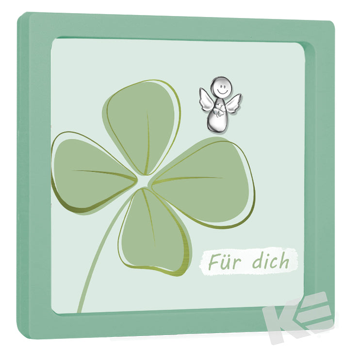 Dekorahmen ca 10 x 10 cm Petrol, Sweet little Bodyguards, bestückt mit einem Metallanhänger Bodyguard mit Klee, Einlegeblatt beidseitig bedruckt, mit Prägung, Klee, edler Karton,1 VE = 2 Stück