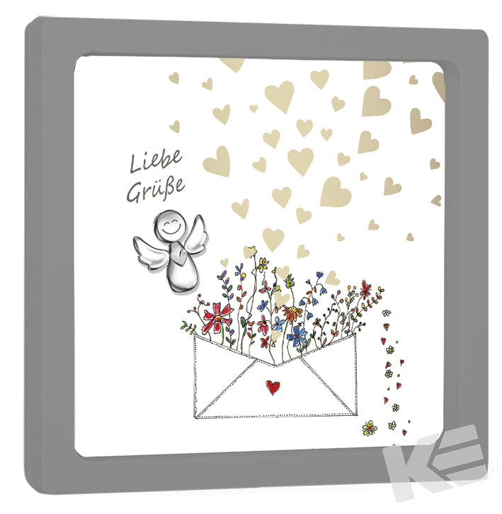 Dekorahmen ca 10 x 10 cm Grau, Sweet little Bodyguards, bestückt mit einem Metallanhänger Bodyguard mit Herz, Einlegeblatt beidseitig bedruckt, mit Prägung, Umschlag, edler Karton,1 VE = 2 Stück