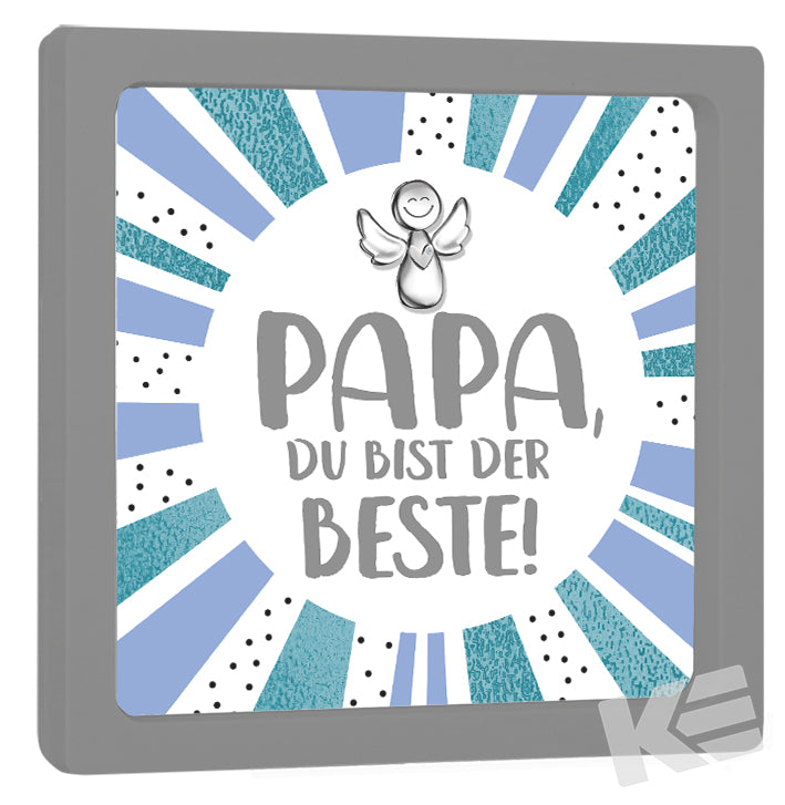 Dekorahmen ca 10 x 10 cm Grau, Sweet little Bodyguards, bestückt mit einem Metallanhänger Bodyguard mit Herz, Einlegeblatt beidseitig bedruckt, mit Prägung, Papa du bist der Beste, edler Karton,1 VE = 2 Stück