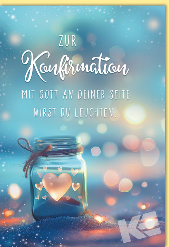 Druckkarte, weißer Karton, Glas mit Herzen, leuchten,