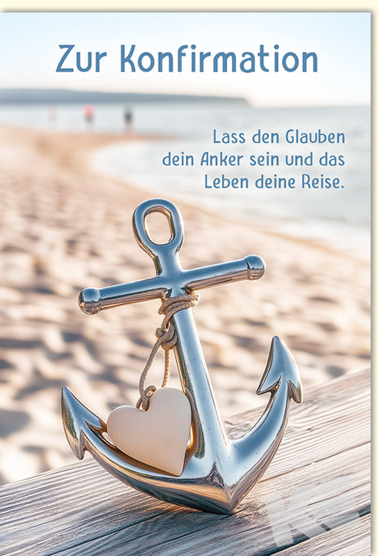 Druckkarte, weißer Karton, Strand, Anker mit Herz