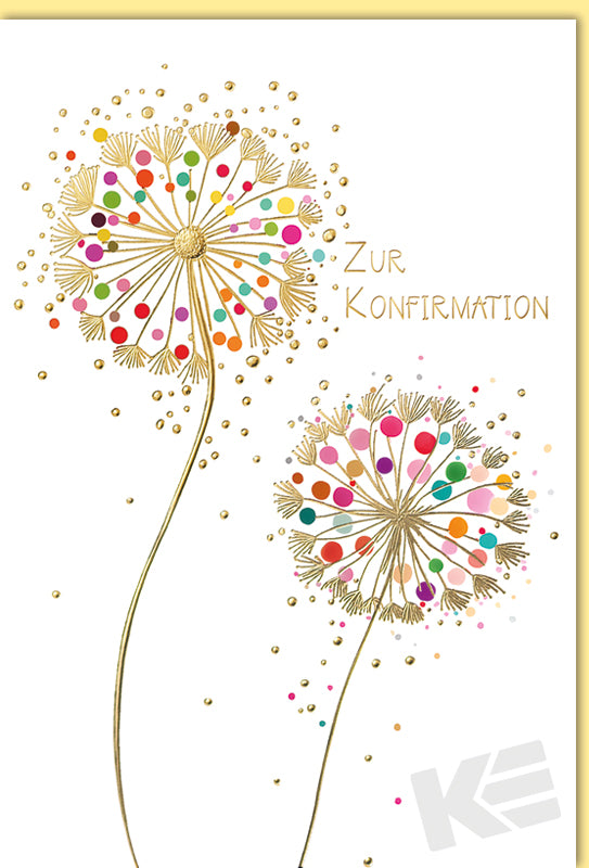 Konfirmation, Druckkarte, weißer Karton, bunte blumen gezeichnet, Karte graviert