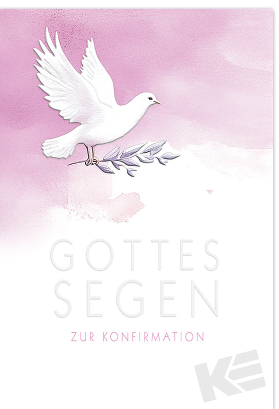 Konfirmation, Druckkarte, weißer Karton, weiße taube, zweig, Karte mit Blindprägung