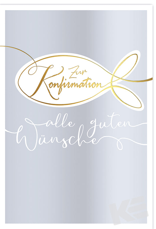 Konfirmation, Druckkarte, weißer Karton, fisch, blauer Hintergrund, Karte graviert