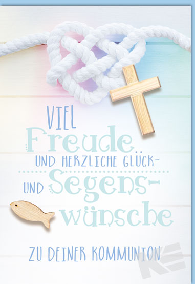 Kommunion, Druckkarte, weißer Karton, Tau mit Knoten und Kreuz