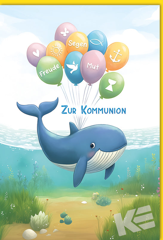 Kommunion, Druckkarte, weißer Karton, Ballon, verschiedene Motive, Wal