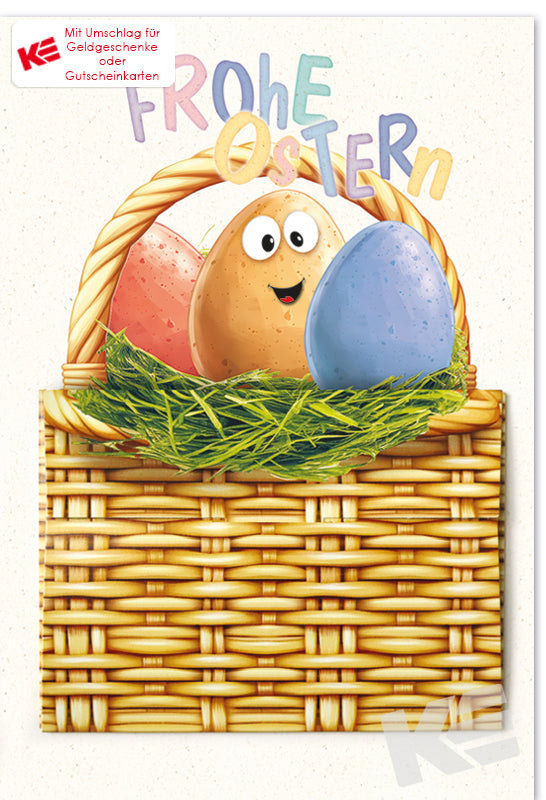 Ostern, Geldscheinkarte, gemaltes Motiv, Osterkorb, Großer Umschlag geklebt,