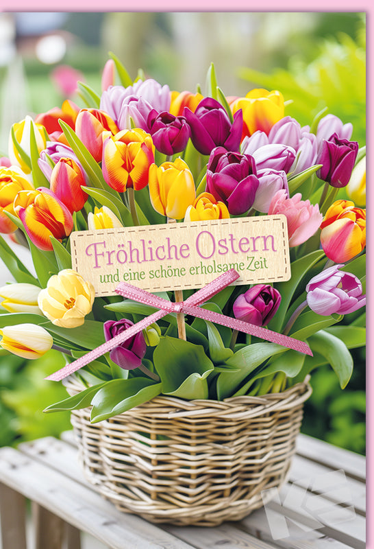 Ostern, Blumen, Osterkorb, Rosa Schleife