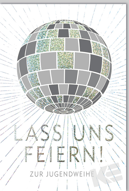 Jugendweihe, Druckkarte, weißer Karton, Discokugel, Karte ist graviert