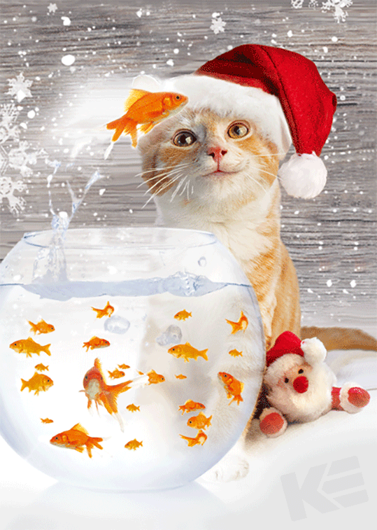 Weihnachten, Tiere, Katze, Goldfische, 10er