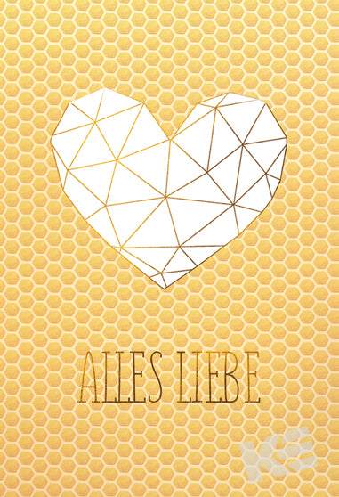 Bee Happy, hochwertiger Karton, Druckmotiv, Prägetext, Waben, Herz, 1VE=6 Stk.