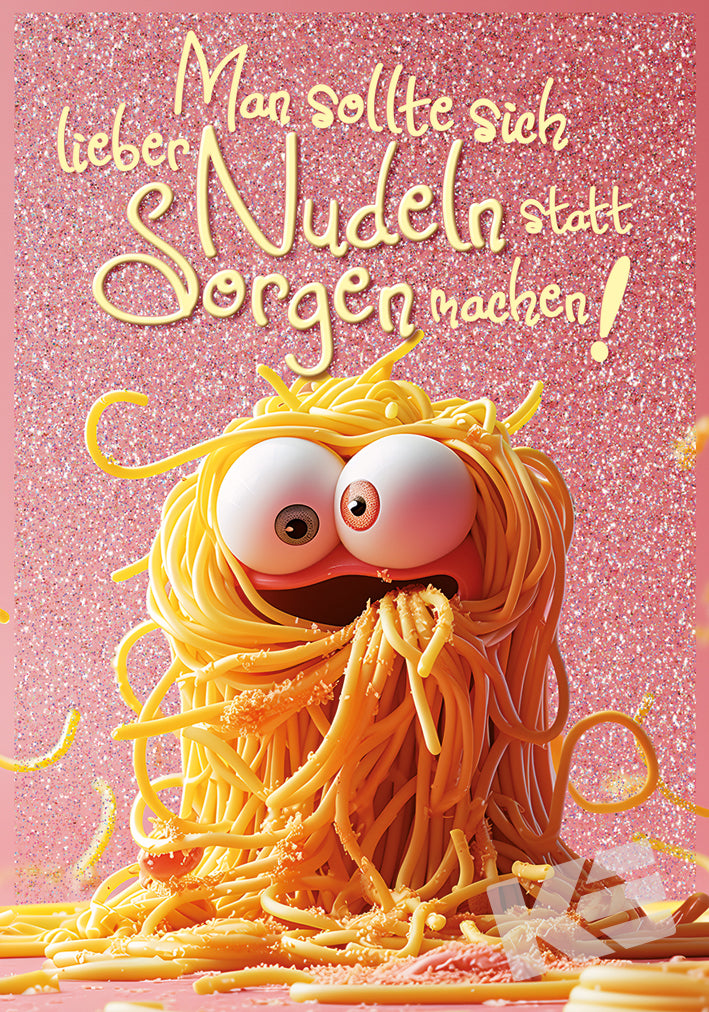 Bitte Lächeln, Postkarten mit Glimmereffekt weißer, 400g Karton, Smiley mit Nudeln, 1 VE = 10 Stk.