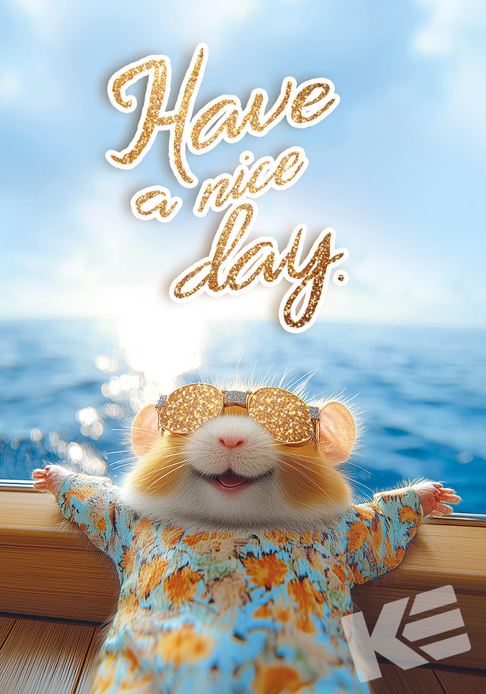 Bitte Lächeln, Postkarten mit Glimmereffekt weißer, 400g Karton, Hamster mit Brille, Meer, 1 VE = 10 Stk.