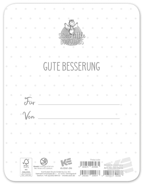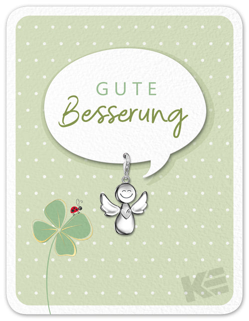 Zusatzprogramm, Glückskarten, Sweet little Bodyguards, strukturierter Karton, Format ca 11,5 x 15 cm, beidseitig bedruckt, mit ein Accessoires, kleiner Metallanhänger, Engel, Stanzteil mit Spruch, Gute Besserung, Klee, 1 VE = 4 Karten