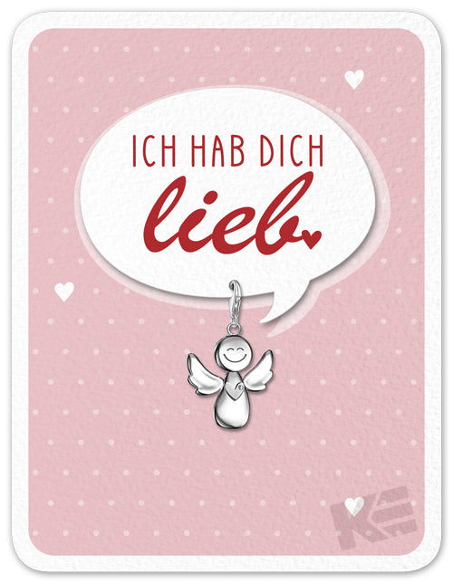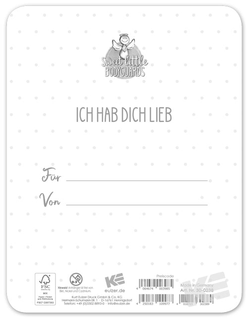 Zusatzprogramm, Glückskarten, Sweet little Bodyguards, strukturierter Karton, Format ca 11,5 x 15 cm, beidseitig bedruckt, mit ein Accessoires, kleiner Metallanhänger, Engel, Stanzteil mit Spruch, Ich hab Dich lieb, Herzen, 1 VE = 4 Karten