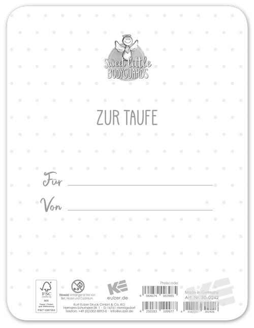 Zusatzprogramm, Glückskarten, Sweet little Bodyguards, strukturierter Karton, Format ca 11,5 x 15 cm, beidseitig bedruckt, mit ein Accessoires, kleiner Metallanhänger, Engel, Stanzteil mit Spruch, Taufe, 1 VE = 4 Karten