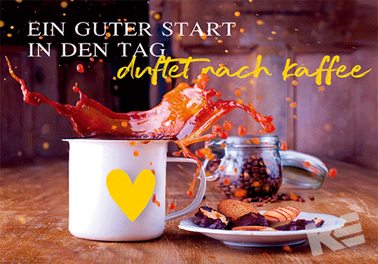 Postkarte, Druckmotiv, quer, Kaffee, Kekse, Darstellung in 3D
