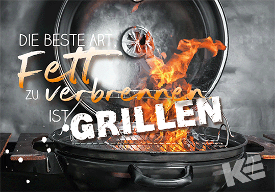 Postkarte, Druckmotiv, quer, Grill, Feuer, Darstellung in 3D