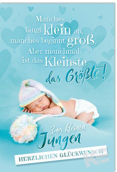 Druckkarte, weißer Karton, Baby, Junge, schlafend, Spruch