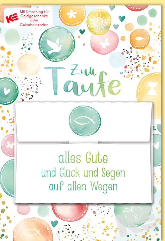 Taufe, Geldscheinkarte, gezeichnete motive, verschiedene Christliche Symbole