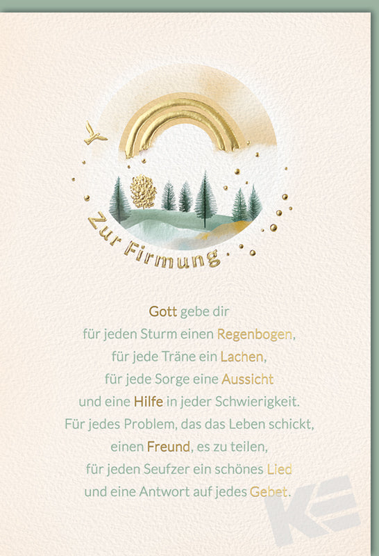 Firmung, strukturierter Karton, Text, Regenbogen, mit Folienprägung