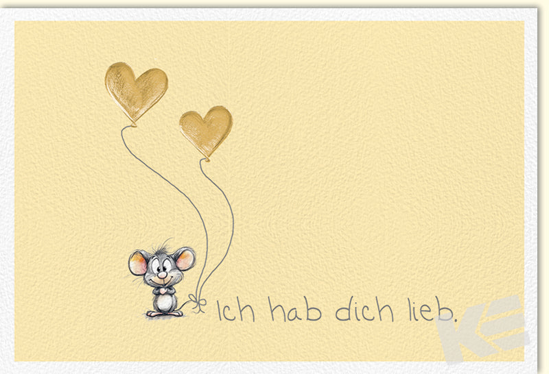 Verkauf nur als Dreher-Konzept, Allgemeine Wünsche, Beautiful Green,Querformat, strukturierter weißer Karton, Druckkarte, mit Prägung, der Natur zuliebe unverpackt, Maus mit Herzballons