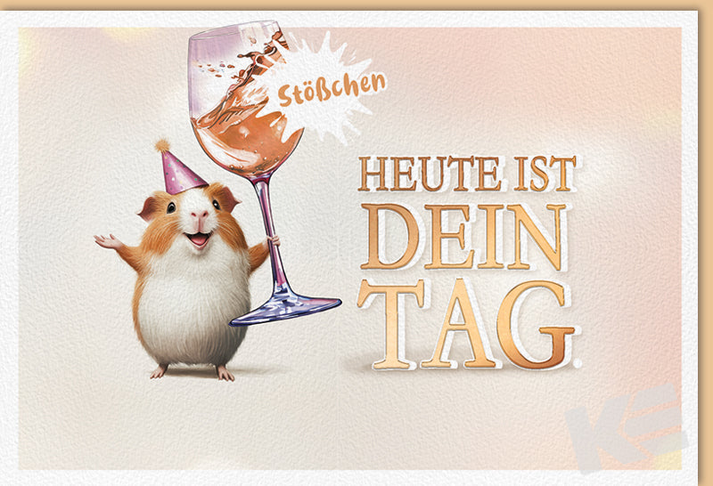 Verkauf nur als Dreher-Konzept, Allgemeine Wünsche, Beautiful Green, QUER, strukturierter weißer Karton, Druckkarte, mit Prägung, der Natur zuliebe unverpackt, Maus mit Weinglas