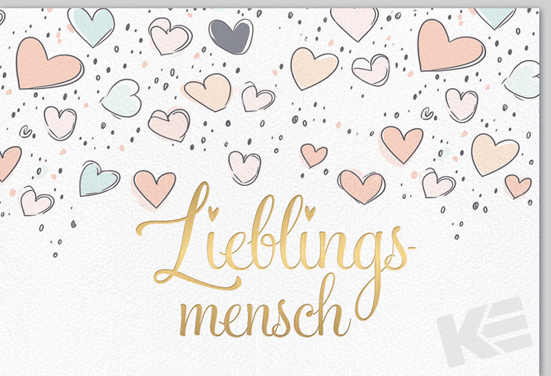 Verkauf nur als Dreher-Konzept, Allgemeine Wünsche, Beautiful Green, QUER, strukturierter weißer Karton, Druckkarte, mit Prägung, der Natur zuliebe unverpackt, gemalte Herzen