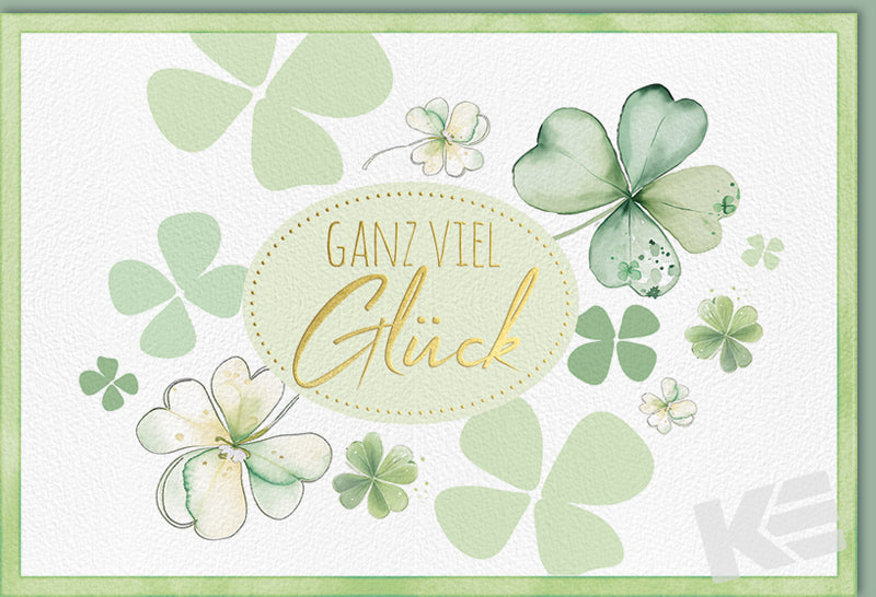 Verkauf nur als Dreher-Konzept, Allgemeine Wünsche, Beautiful Green, QUER, strukturierter weißer Karton, Druckkarte, mit Prägung, der Natur zuliebe unverpackt, Kleeblätter