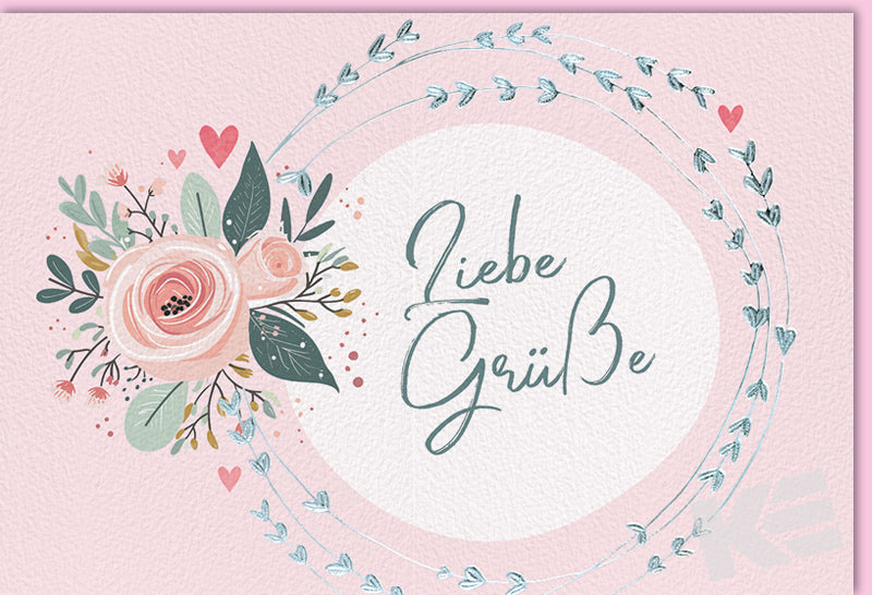 Verkauf nur als Dreher-Konzept, Allgemeine Wünsche, Beautiful Green, strukturierter weißer Karton, Druckkarte, mit Prägung, der Natur zuliebe unverpackt, Blumenstrauß,QUER, Kreis aus Herzen