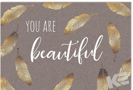 Spruchreif, Federn, Prägung gold, You are beautiful,
