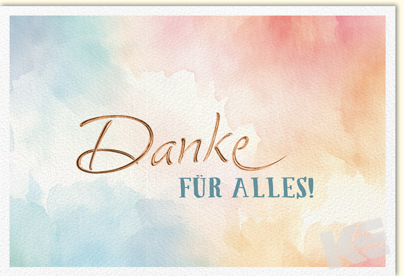 Verkauf nur als Dreher-Konzept, Danke, Beautiful Green, strukturierter weißer Karton, Druckkarte, mit Prägung, der Natur zuliebe unverpackt, QUER, Bunte Farben im Wolken Design