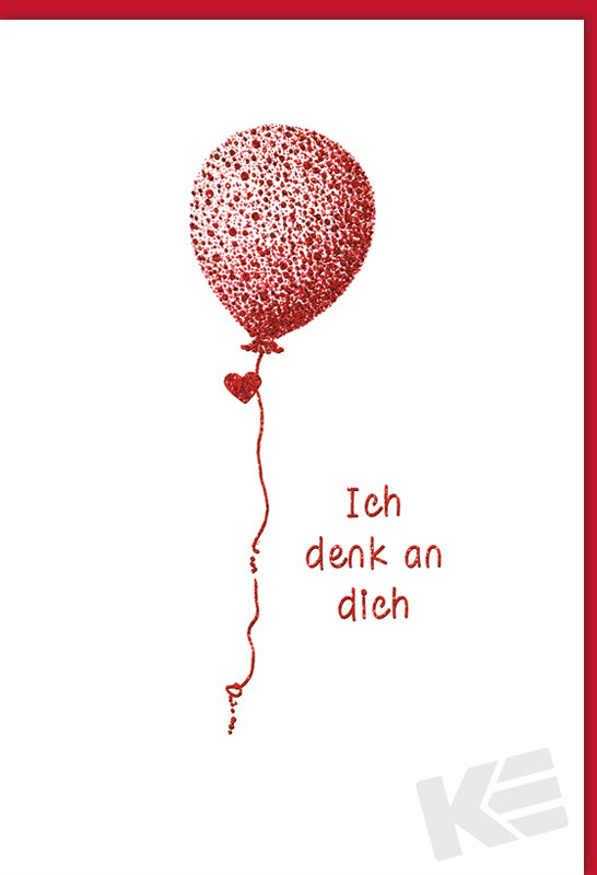 Allgemein, Druckkarte, weißer Karton, Roter Ballon, ich denk an dich