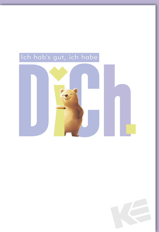 Allgemeine Wünsche, Druckkarte, weißer Karton, ich habs gut, ich hab dich, Bär