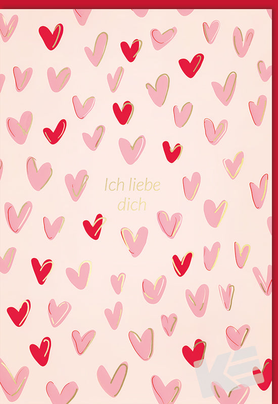 Druckkarte, weißer Karton, Prägung, Herzen, motiv gezeichnet