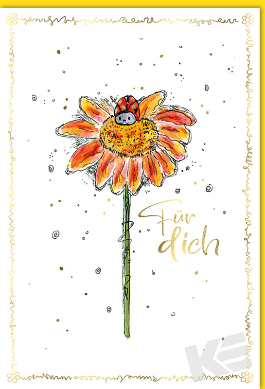 Danke, Druckkarte, weißer Karton, Prägung, motiv gezeichnet, Blume, Marienkäfer, Für dich