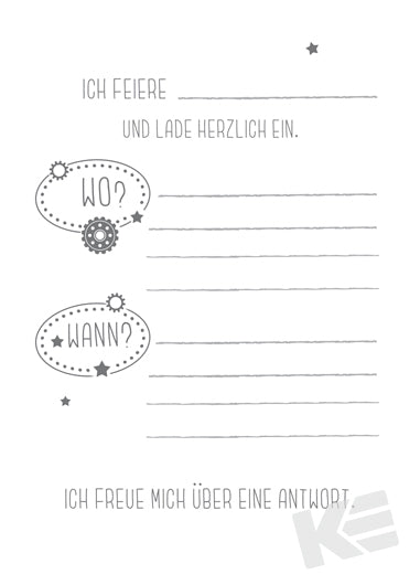 Einladung, Roboter, Päckchen, mit Innendruck, 1VE = 5 Karten in Cellobeutel mit Umschlag