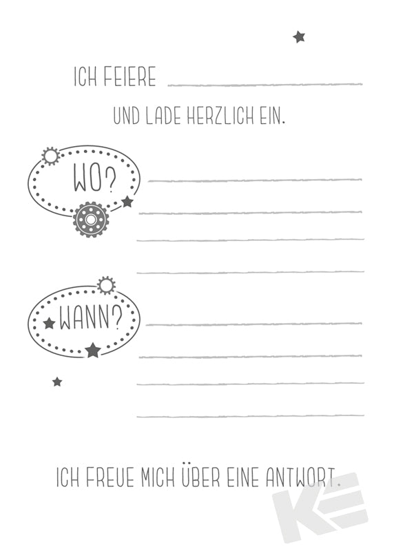 Kindereinladung, Druckkarte, weißer Karton, Innentext, Auto, Luftballoons, 1VE = 5 Karten in Cellobeutel mit Umschlag