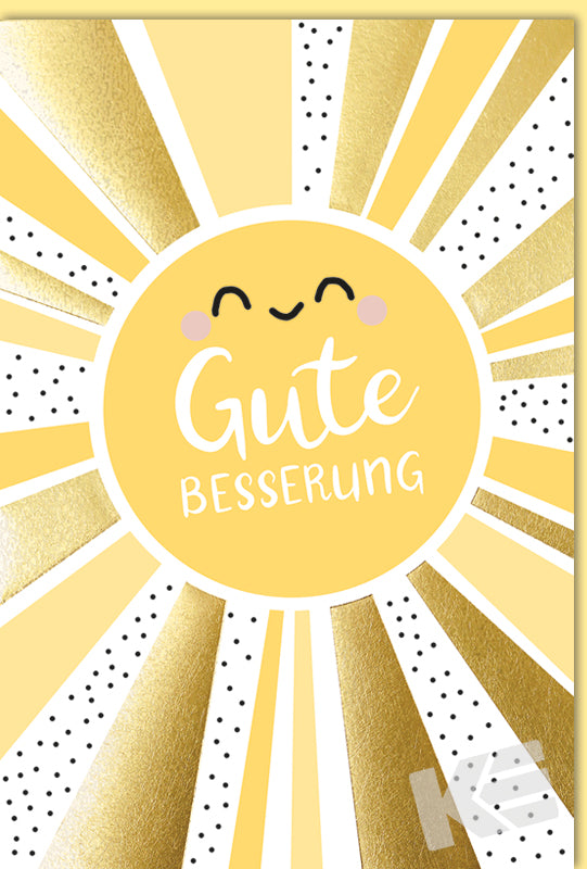 Gute Besserung,Druckkarte, weißer Karton, Sonne, mit Heißfolienprägung