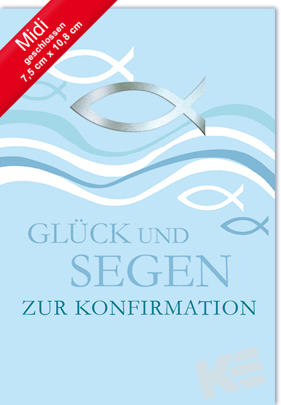 Midigrußkärtchen Konfirmation,weißer Karton, Druckkarte, fische, wellen, wasser, Karte graviert