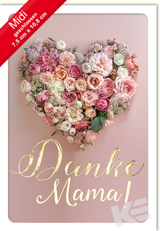Midigrußkärtchen Muttertag,weißer Karton, Druckkarte, Herz aus Blumen, Danke Mama, Karte graviert