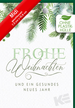 Druckkarte, strukturierter weißer Karton, Motiv gezeichnet, Tannenzweige