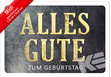 Midigrußkarte , Illumina, Geburtstag, Druckkarte, glatter weißer Karton, goldene Schrift Alles Gute