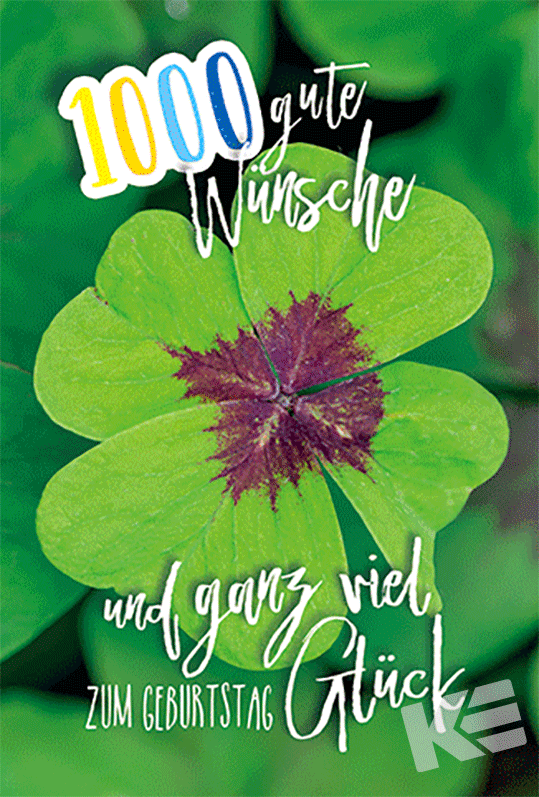 Geburtstag, Druckmotiv, weißer Karton, hoch, Wechselbild, 3D-Effekt mit einem Flip Animations Effekt, 1000 gute Wünsche, Kleeblatt