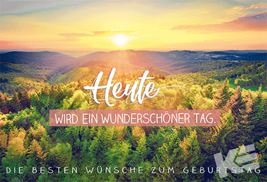 Geburtstag, Druckmotiv, weißer Karton, Karte im Querformat, 3D-Effekt, Berge, Sonnenuntergang